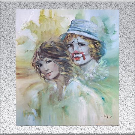 Landschaft Dame mit Harlekin